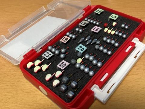 ジグヘッド3.0gまでと、それ以上で分けて収納しています。