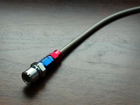 これら変換アダプタやバンジョーを使う関係でAN3規格のホースが必要になり、無駄にSWAGE LINEのステンメッシュになってしまった。だってホースの長さ細かく売ってたんだもん。