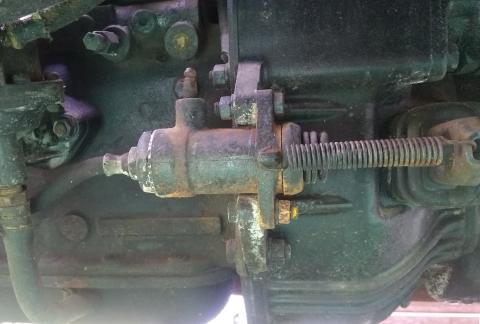 これがレリーズシリンダー。幸いT2000はトラックなのでジャッキアップ無しで念のため保険のウマをかけておけば潜れる。