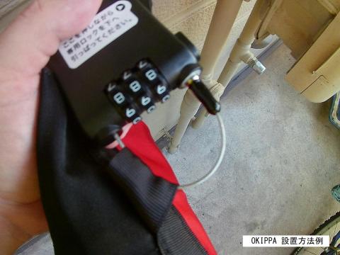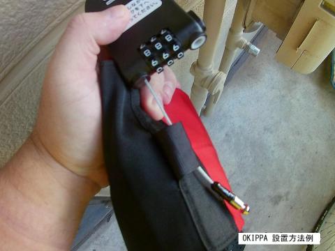 ダイヤル錠側に、OKIPPAバッグを取り付ける。