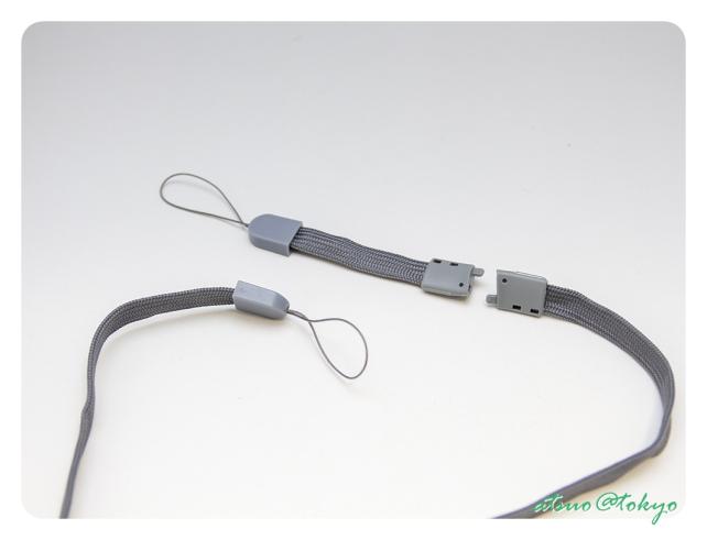 付属のストラップは安全に配慮しテンションが掛かれば離れるタイプのモノなので、素直に付属のストラップで使用します。