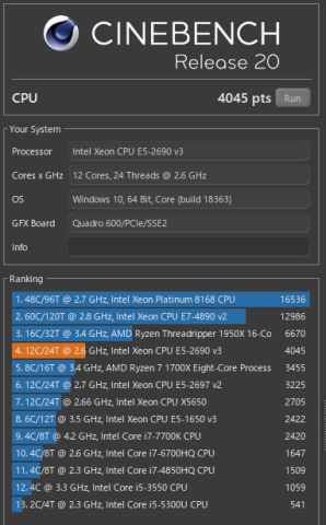 おそらく1コア単位だと最新の世代に負けていますが、12コア24スレッドがフル活用できる状況なら今でも悪くない性能です。