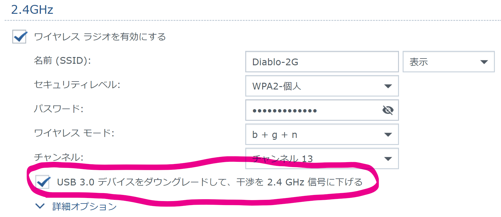 また、Synologyの無線ルーターは無線干渉のためにUSB3.0を2.0に落とすって言う設定があるくらいです。