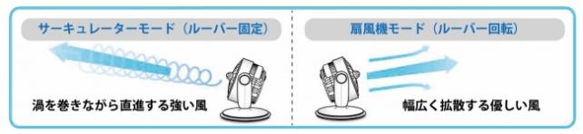 特徴としては「送風モード」と「回転ルーバーモード」があります。