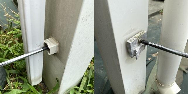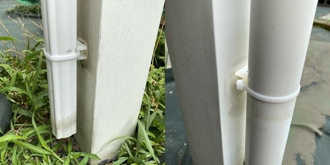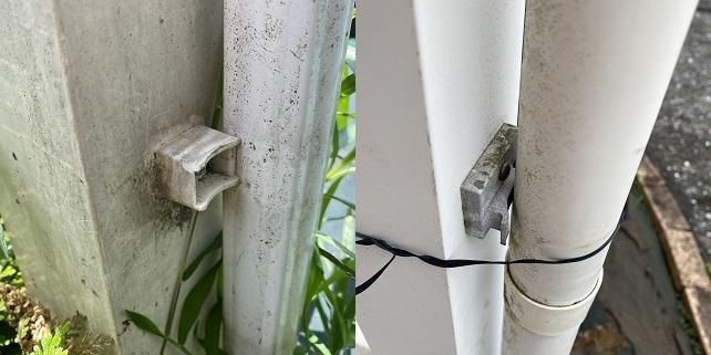 購入のきっかけは、自宅の雨どいを誰か蹴ったのか?パイプのサドルが割れて取れてしまっており
