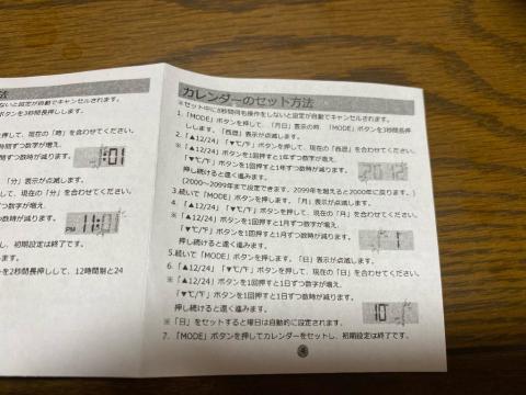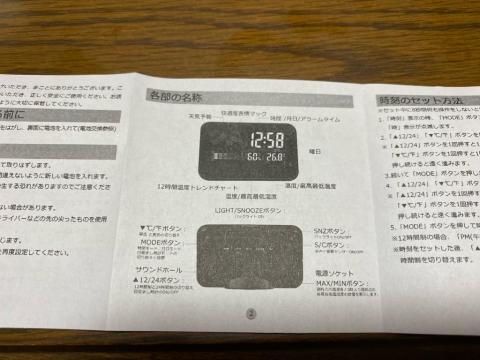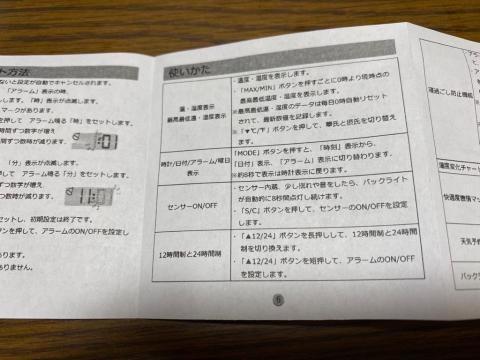 説明書には時計のセット方法などが明記されています