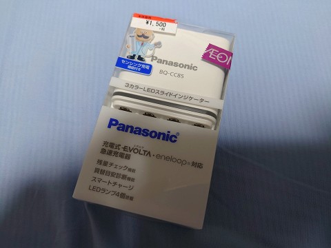 最新充電器のBQ-CC85が在庫処分ワゴン内で1,500円+税で売られていたため