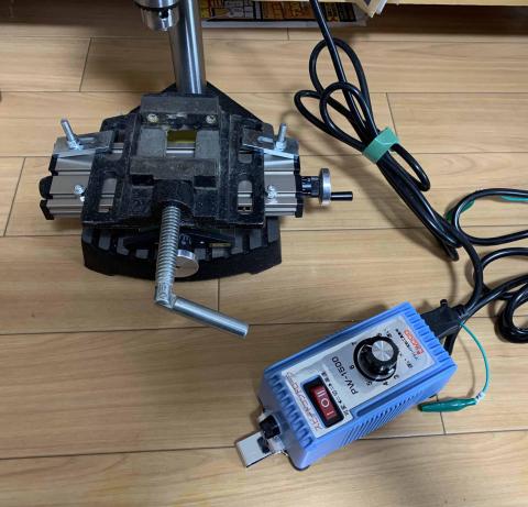 その他、スピードコントロール不可な物は、 東洋アソシエイツの卓上ボール盤やプロクソンのバンドソー、コンデンサーで制御するバフグラインダーもモーターの仕様で使えません