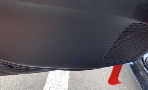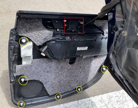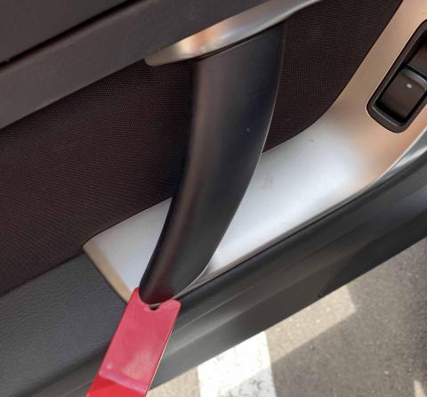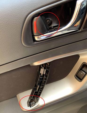 ここをバラしていくのですが、内装パネルはネジ2本で止まっています、手前にネジが見えない様に偽装のパーツがありますのでここを取り外します