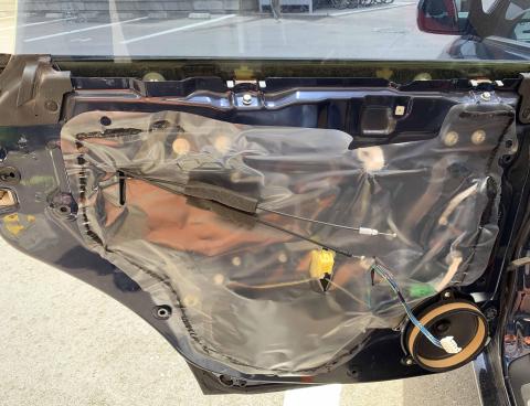 ビニール張って、コネクター繋げて、レバーのコネクターをはめて内張を戻します