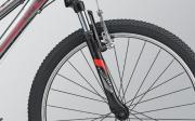 ・フロントフォークのストロークは50mmあり、少し勢いをつけて段差に突撃しても