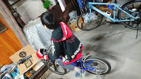 次男も小さな頃に乗ってた自転車を懐かしく扱ってます(こんな小さかった?)