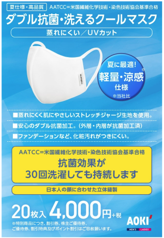 先日、別の用事でニトリモールに行った際、何気にAOKIにいってみると、あのマスクがワゴンで売られていました。・・・早速ゲットしてきました。