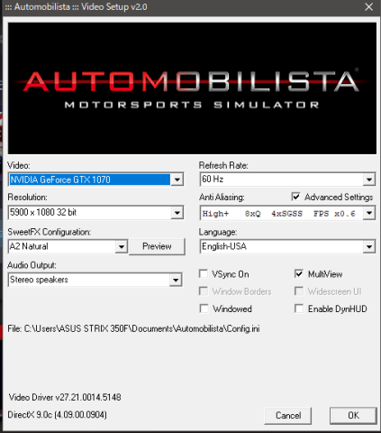 Automobilistaにベゼル補正は無いので(あるかもだけど私はわからない)、RADEONだと無理ゲーぽいです。(ベゼル補正できない)