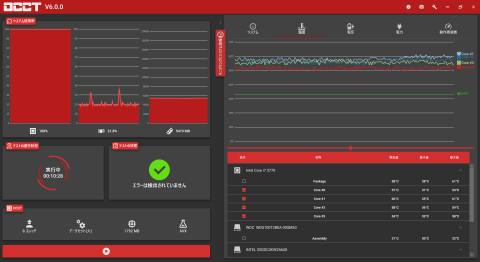 25℃の部屋で負荷を与えるOCCTを使って検証してみましょう。