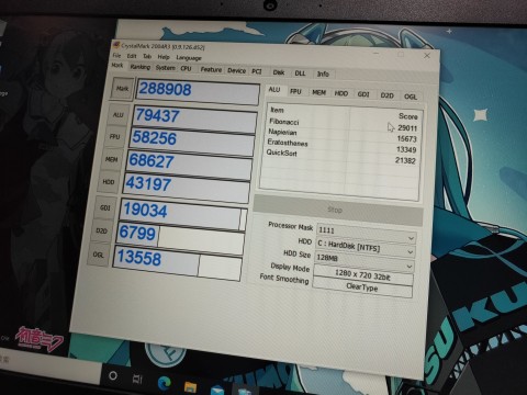 新しいSSDに変えるとCrystalMark2004R3は30万点を超えそうです。薄型