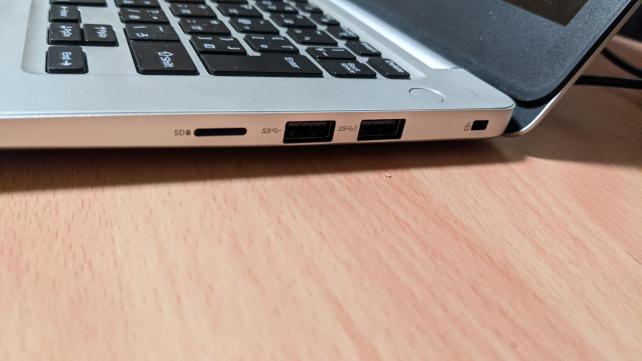 SDカードスロットでは無い所が少し残念だ。そしてUSBポートが2ポートしか無い所もちょっと苦しい所。せめて左にも1ポート欲しかったかなという感じ。