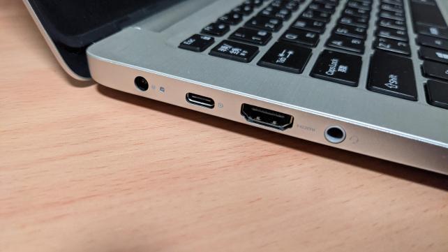 左側には電源ジャック、Type-Cポート、HDMI、イヤホンマイク端子がある。