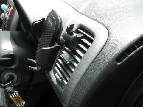 エアコン吹き出し口のフィンに固定台座を取り付けて見ました。(正面)