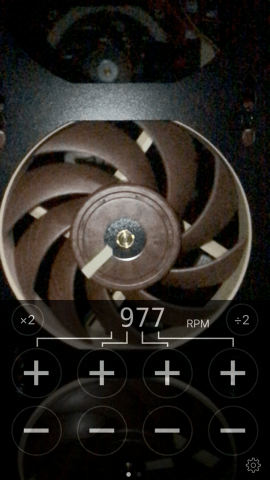 ポチポチと数字を上下させて画面内のファンが静止して見えたときの数字が回転数、てわけです。