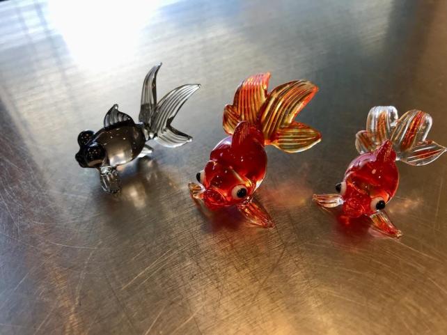 それを見たお客さんが 友達を連れてきたよ と 下さったのが よりリアルな硝子の金魚