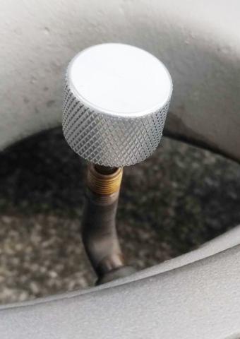 タイヤの空気圧が1か月程度で下がってしまうなんて時は、だいたいがバルブコアと呼ばれるココが劣化 or 緩んでいて空気が抜けてしまうことがありますよ。