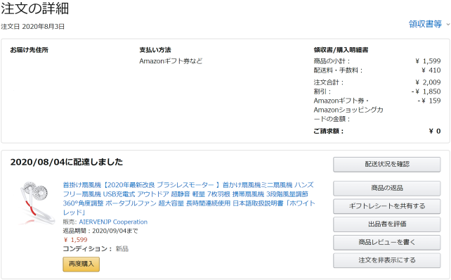 昨年、首掛け扇風機を買いました。これはめっちゃ便利です。