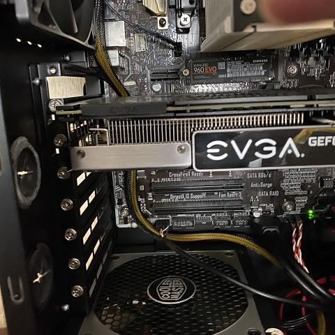 予備機のマザーボードはちょっと古くASUSのH170ですが、カードの刺す場所がM2SSD(960EVO)の横にしか取り付けできません。