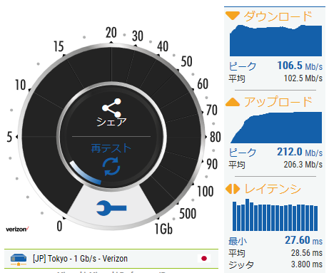 有線の1/3~1/4のスピード。100Mくらいしか速度は出ないけど、スマホも同じなのでルーターが古いからでしょう。そろそろ新しいの買おうかな。