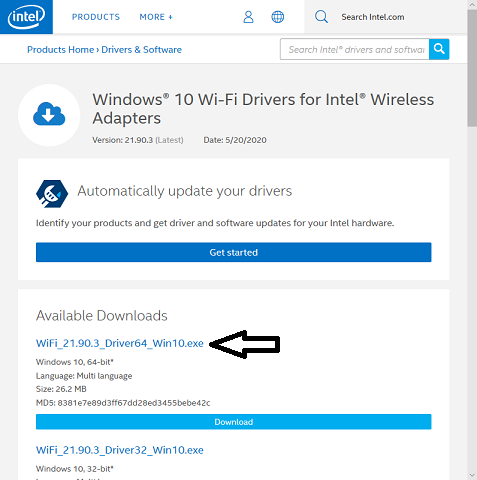 デバイスマネージャー見ても「?」マークになっており、仕方ないのでIntelのHPに行ってドライバーを探してダウンロード。