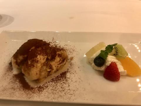デザートはティラミスとフルーツアソート
