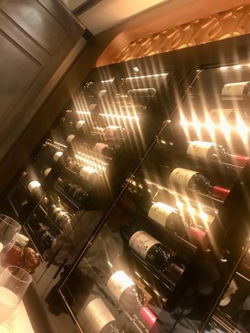ディナータイムに壁いっぱいに並ぶワインリストから選ぶと、ひとりあたり3万円超えの高級店です