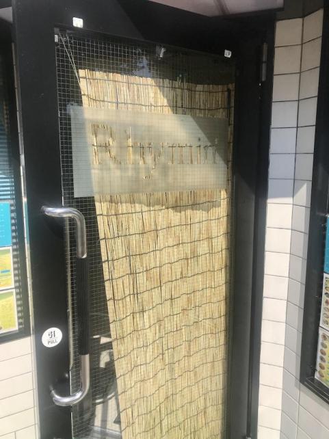 今はどんなに暑い日でも換気のため 玄関ドアを半開放しているので ガラスドアの内側にすだれを