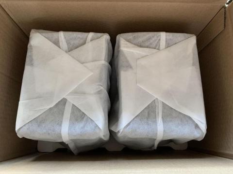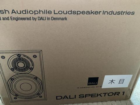 通常の単品スピーカーは1本ずつ梱包されていると思うのですが、コンパクトなSPEKTOR1は2本1組で箱に収められていました。B級品ということで一度開梱されていましたので、保証書は箱の中に収められていました。通常は外に貼付されているはずです。日本語の書類や「木目」という外装色を表すシールは輸入代理店のD&Mによるものでしょう。