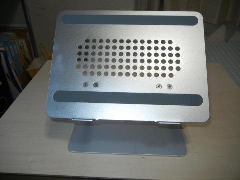 色はシルバー、パソコンが乗る台座部分は通気孔が設けられており、PCの熱対策としても、非常に優れていると思います。