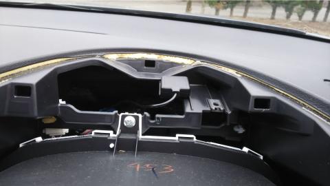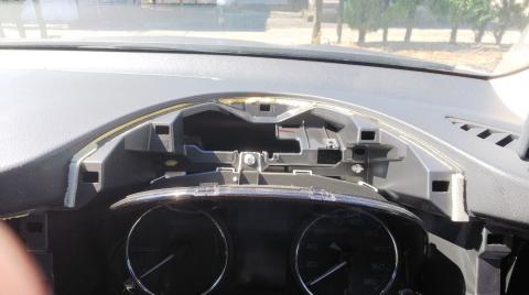 アウトランダーPHEVにはメーターパネルのヒサシを外したところにアンテナを設置する専用スペースが用意されているので、