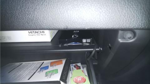 本体はグローブボックスの中に設置。取り付け自体は30分もかからず終了しました。