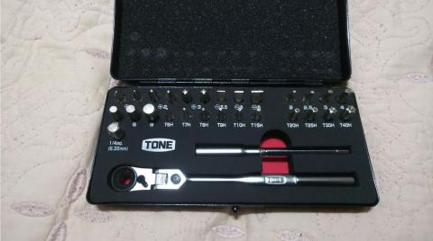 ETCを取り付ける際に、ナビを外す必要があったのですが、盗難防止のボルトで止めてあり、取り外すためには1/4の差込が必要でした。1/4のラチェット自体は持っていたのですが、エクステンションが無く、外す事が出来なかったので、この際だからそれなりのセット物を買って置こうかと思いこちらを購入しました。
