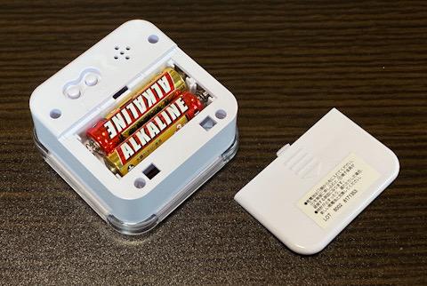 背面側には電池ボックス、操作ボタン、スピーカー孔があります。