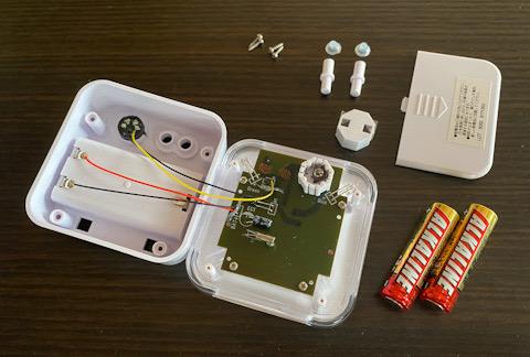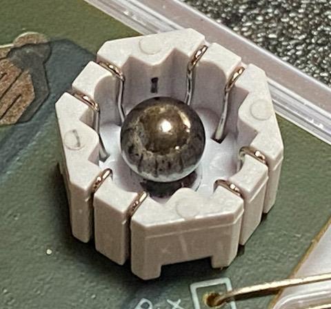 分解してみると基板に8角形のパーツが取り付けられています。カバーを外すと中に鉄球が入っていました。本体を回転させた時に各辺の電極に鉄球が触れて通電(モード切り替え)する仕組みのようです。