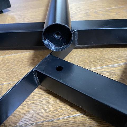なんと割とマトモじゃないですか。パイプ上下1本で固定されているだけなんだけど、しっかりしています。スチール製ですが重くてどっしりしてて倒れなさそう。