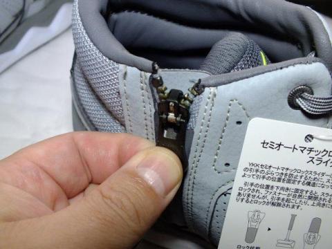 サイドジップが有ることで、靴紐は最初に自分の足に合わせた状態で結んだままに出来ますが、