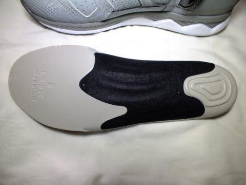 この安全靴の場合は、プレートは入れず、種類の違うソール素材の貼り合わせという形で