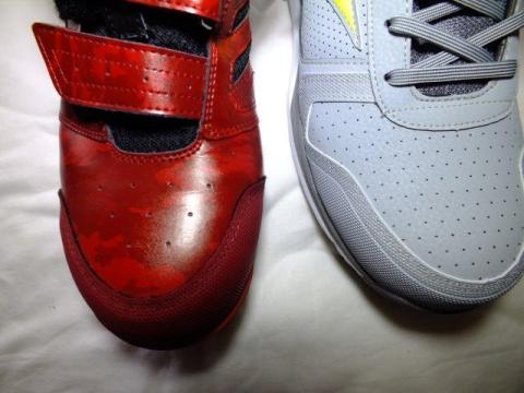 安全靴ゆえに、つま先が重くなり、結果重心が前掛かりになっている点を、