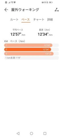 それでも、1km12分台のペースで歩けていますので、