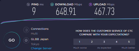 回線についてはおそらく1G回線・・・っというのもインターネットが最初から引き込まれている賃貸物件なので、正確な情報はわからず。IPアドレスを検索するとCTC・・・コミファで有名な中部テレコミュニケーションのようです。