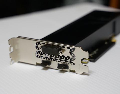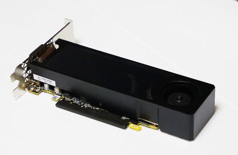 2スロット厚外排気クーラーでロープロファイル、ブラケット込み23cmと比較的長めのカード長のおかげでまるで羊羹のような異質なスタイル。