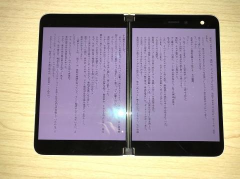 電子書籍ビューワは、私は主にsonyのReaderを使用しているのですが、SurfaceDuoへ対応をしているわけではないため、見開きは中央部が見切れてしまいます。