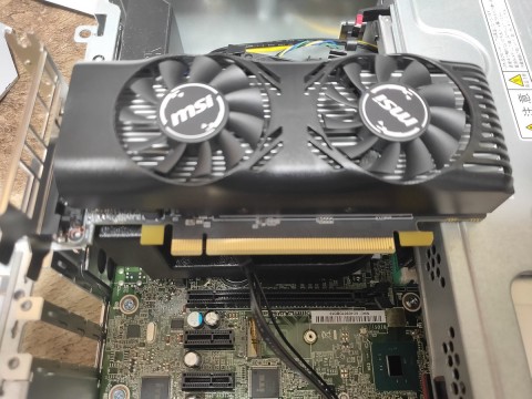 フレームの一部をカットし、MSI GTX 1650をむりやり突っ込んでみました。