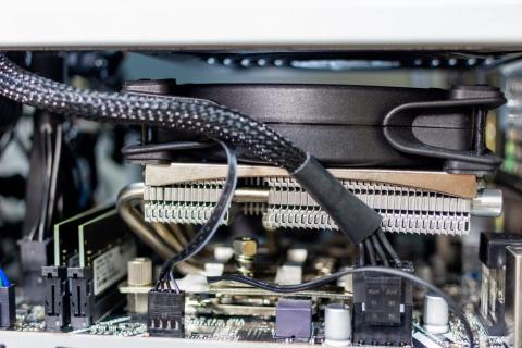 以前は純正のCPUクーラーをつけていましたが、今回はいろいろ探してアイネックスのGI-46Uというクーラーをつけてみました。